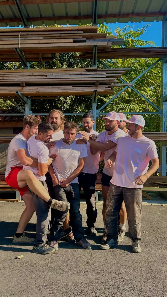 Aujourd’hui, les gars du chantier Cultur'bois ont enfilé le t-shirt rose de l’entreprise pour soutenir la campagne #OctobreRose 🎗️