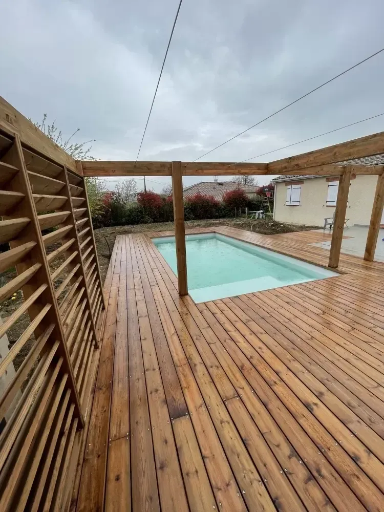 Chez Cultur'bois, nous sommes fiers de présenter notre dernière réalisation : une pergola parfaitement intégrée à une piscine à Toulouse. Ce projet exceptionnel met en avant notre expertise en charpente et pergolas bois, offrant un espace de détente unique en bord de piscine sans l'encombrement d'un poteau central. Grâce à notre savoir-faire, nous avons su optimiser l'espace pour un confort maximal.