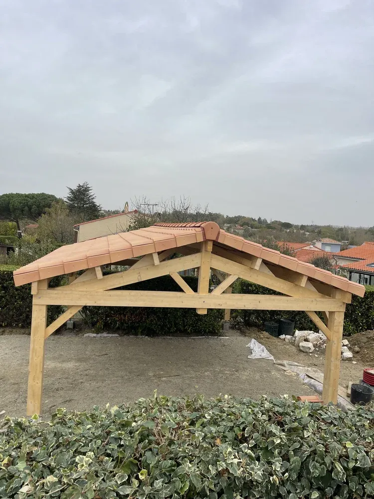 À Toulouse, la sécurité et la protection de vos véhicules sont primordiales. C'est pourquoi Cultur'bois, spécialiste en charpente et pergolas bois, vous propose la réalisation d'un carport double avec tuile. Ce carport vous permettra de stationner vos véhicules en toute sécurité et à l'abri des intempéries.